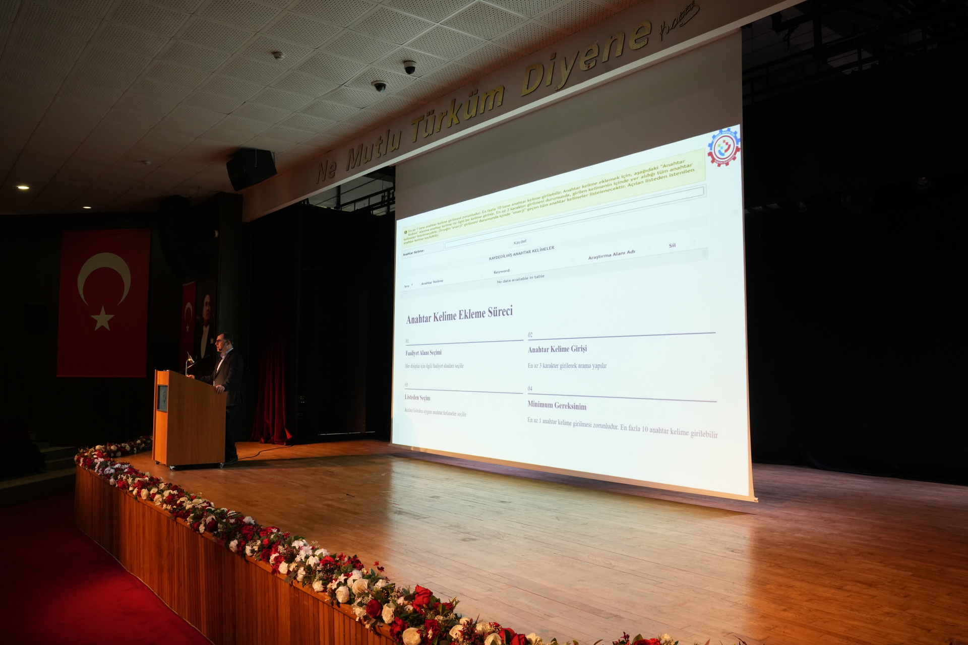 Etkinlikte, Merkez Müdürümüz Doç. Dr. Mehmet KOKOÇ tarafından TÜBİTAK 3501-Kariyer Geliştirme Programı’nın amacı, başvuru koşulları, değerlendirme süreçleri ve proje hazırlığında dikkat edilmesi gereken hususlar hakkında bilgilendirme sunumu gerçekleştirildi.