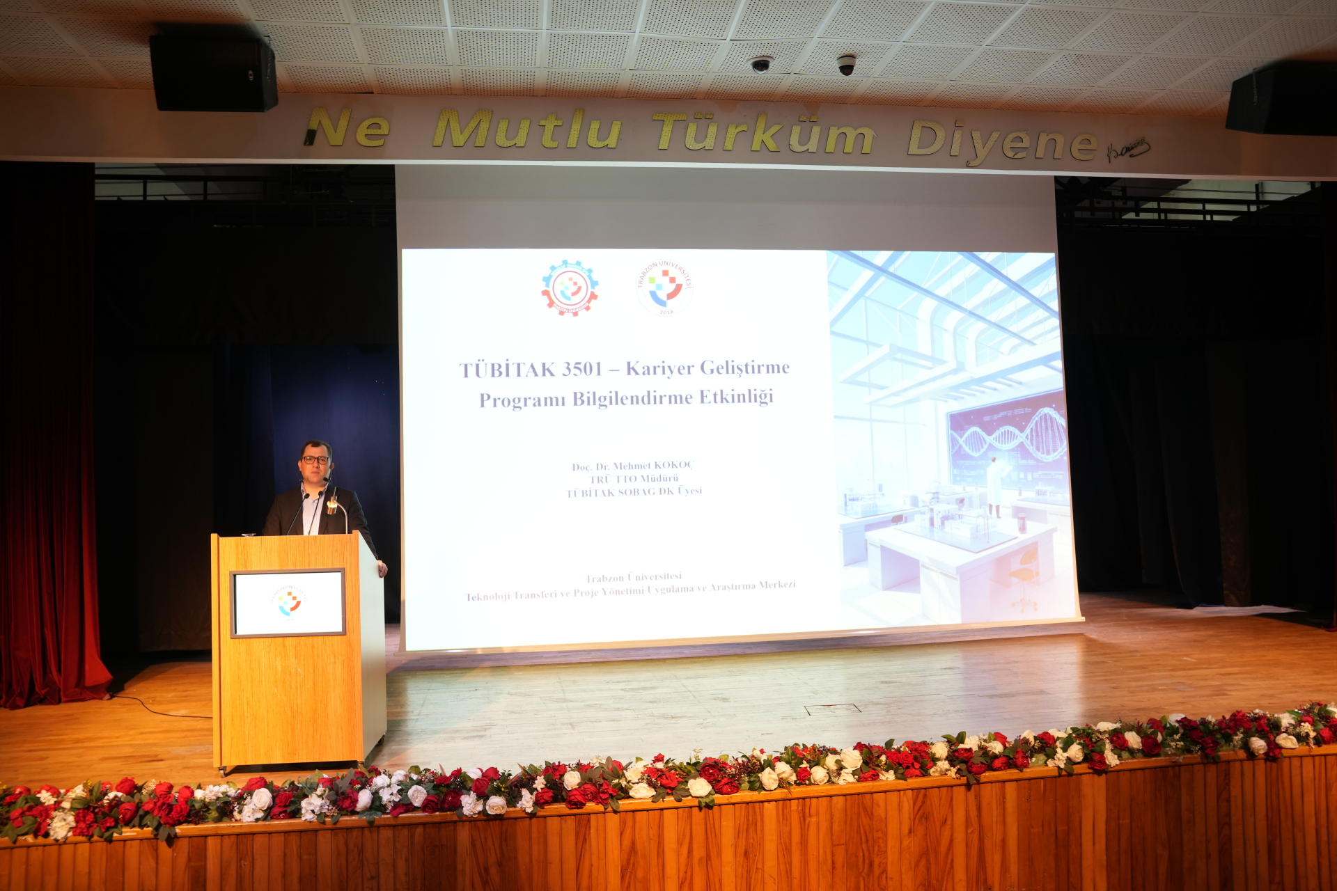Trabzon Üniversitesi Teknoloji Transferi ve Proje Yönetimi Uygulama ve Araştırma Merkezi (TTO) tarafından düzenlenen “TÜBİTAK 3501-Kariyer Geliştirme Programı” başlıklı bilgilendirme toplantısı, Mahmut Goloğlu Kültür Merkezinde gerçekleştirildi.